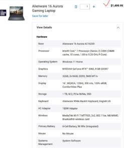 Alienware m18 R1 nhập khẩu từ Mỹ – Toàn cảnh trả hàng Khách build cấu hình theo yêu cầu từ website nhà sản xuất