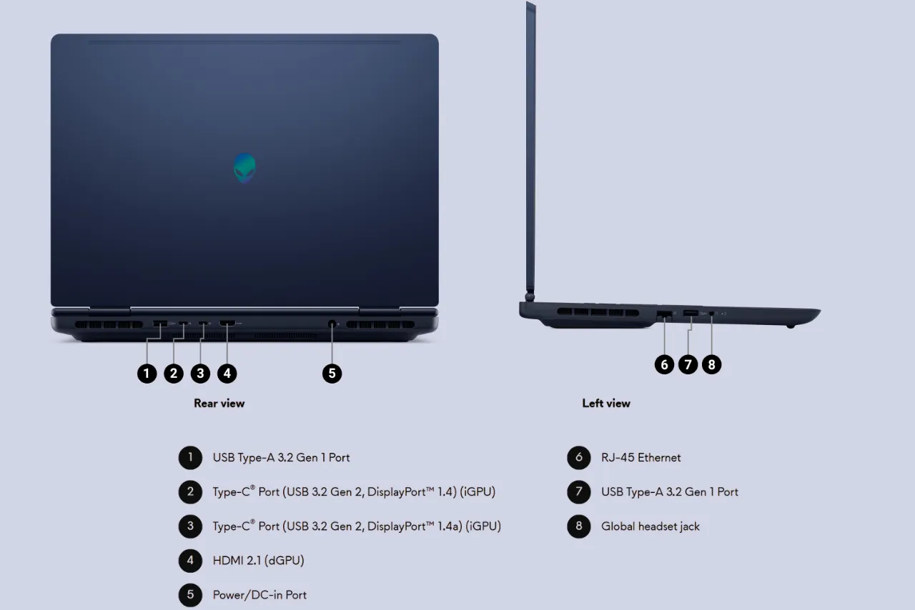 Cổng kết nối trên Alienware 16 Aurora AC16250