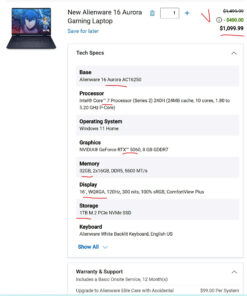Alienware 16 Aurora / Intel Core 7 / RTX 5060 / 32GB / 1TB / 16″, WQXGA / New – From U.S.A