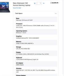 Alienware 16X Aurora / Ultra 9 – 275HX / RTX 5070 / 32GB / 2TB / 16″ WQXGA / New – From U.S.A