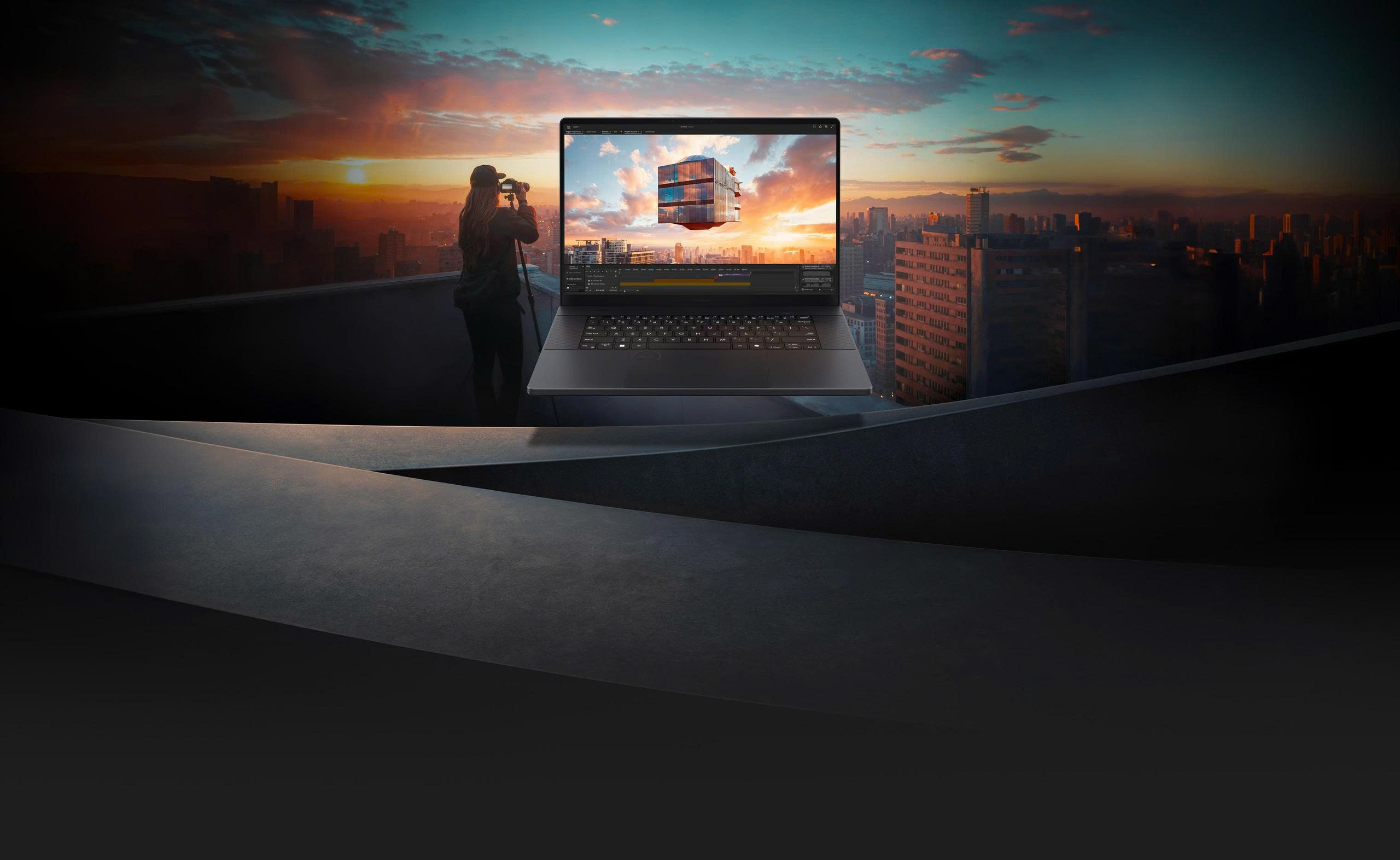 Thẩm mỹ chuyên nghiệp – Lấy cảm hứng từ độ chính xác của nhiếp ảnh chuyên nghiệp, khung máy tính xách tay có các sọc dọc phản ánh thiết kế máy ảnh chuyên nghiệp — cứng cáp và sẵn sàng hành động.