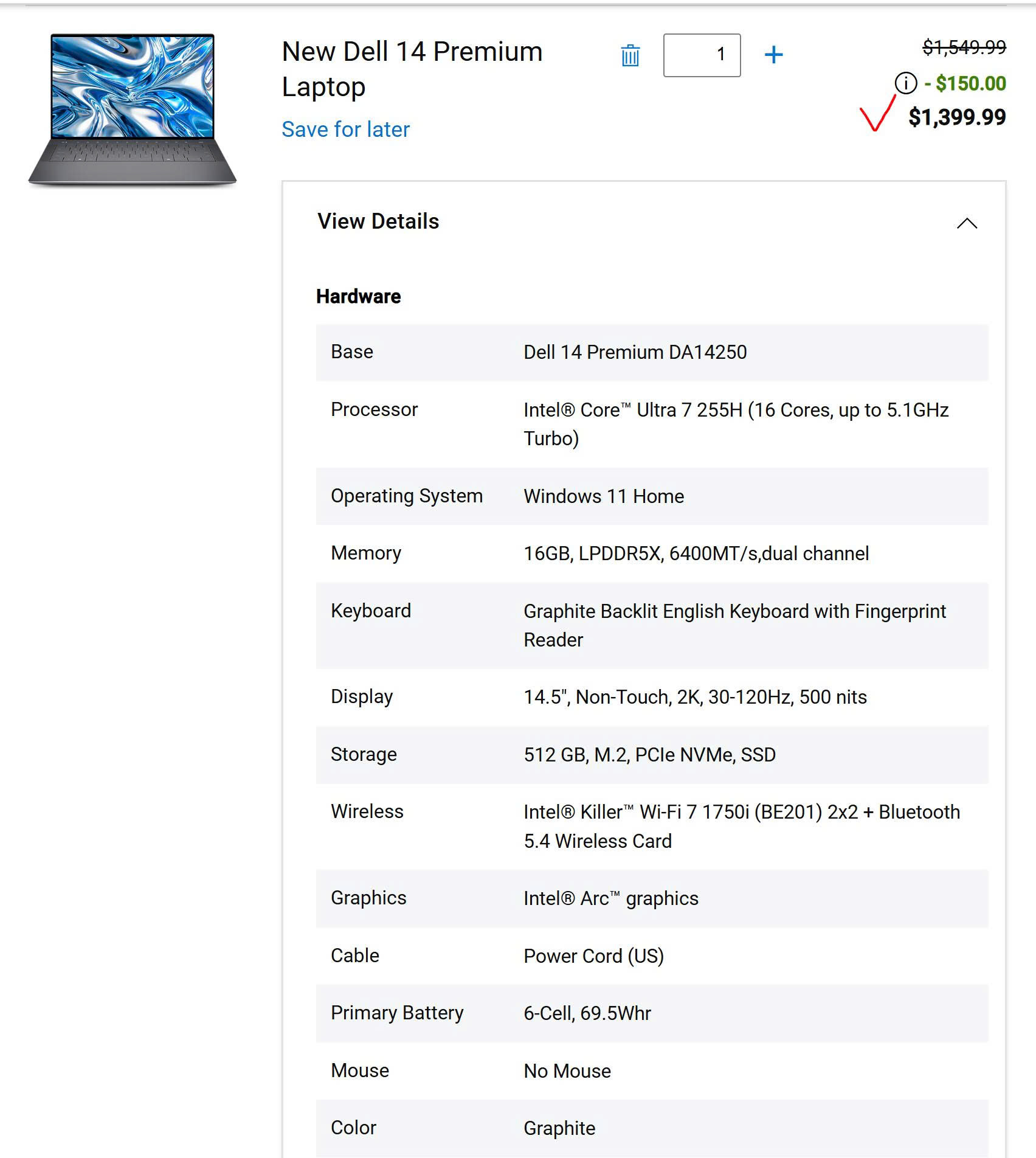 Màn hình sắc nét trên Dell 14 Premium DA14250 (2025)