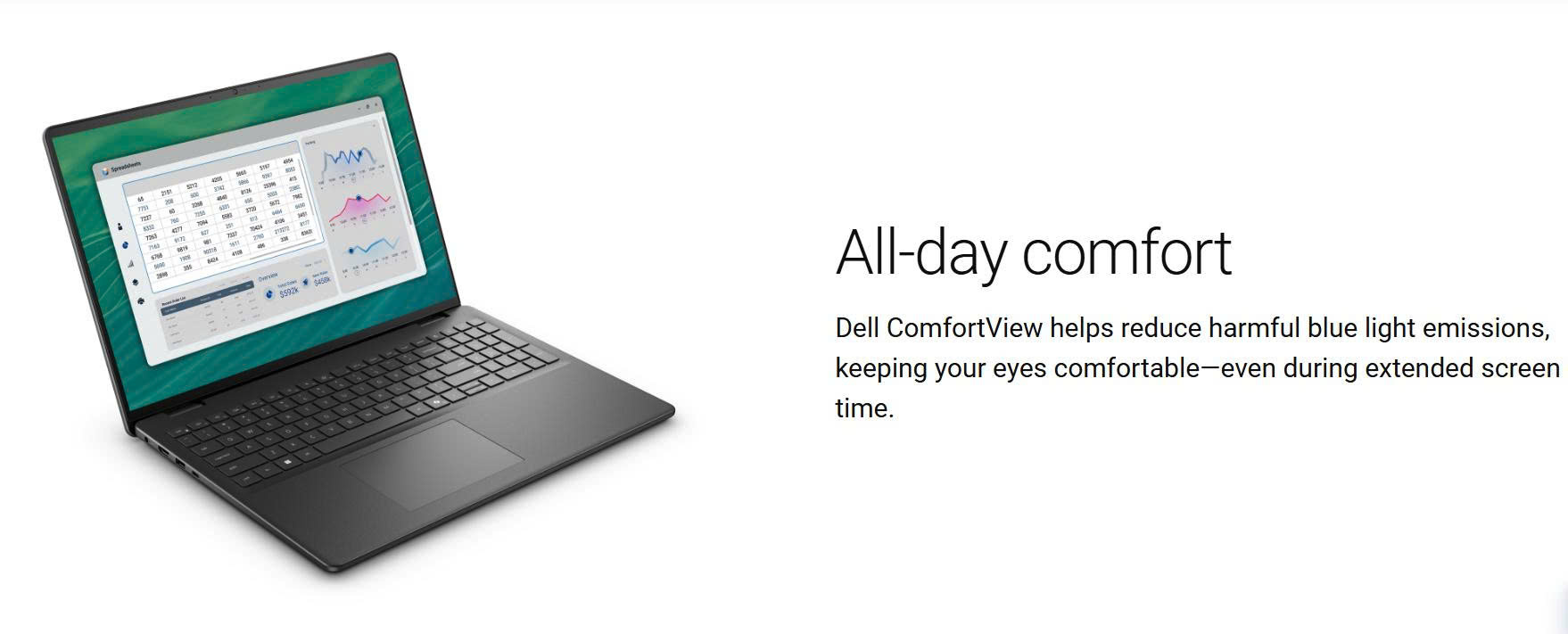 - Chất lượng hiển thị: Độ phân giải FHD+ (1920×1200) cho chi tiết sắc nét. Công nghệ chống chói (Anti-Glare) và ComfortView giúp bảo vệ mắt khi làm việc lâu dài.