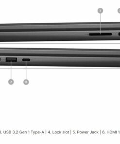 Kết nối đa dạng: 2× USB‑A 3.2, 1× USB‑C 3.2 (data/video), HDMI 1.4, SD card, jack 3.5 mm.