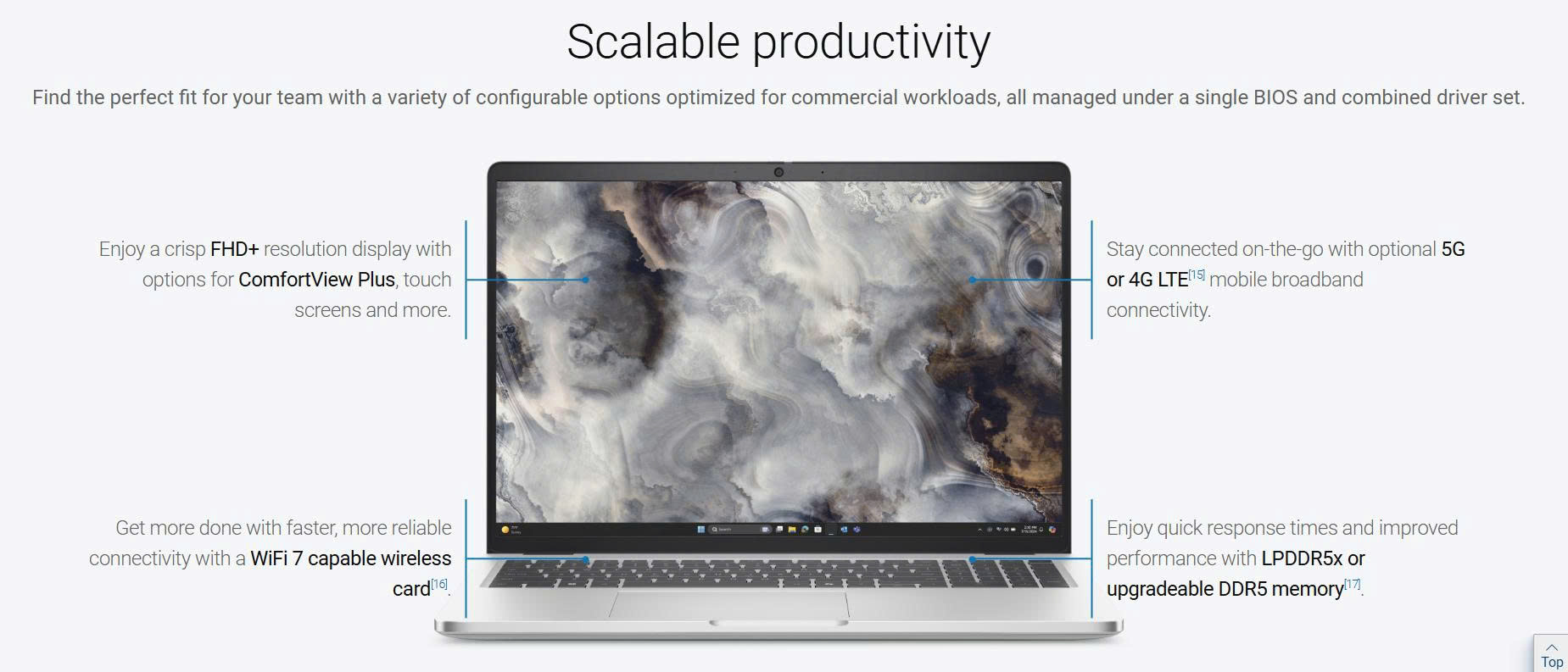 Viền mỏng tinh tế trên màn hình tỷ lệ 16:10 cung cấp thêm 10% diện tích hiển thị, mang đến không gian rộng rãi hơn cho công việc.