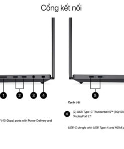 Dell Pro Max Premium 16 inch MA16250 (2025) được trang bị hệ thống khe cắm và kết nối đa dạng, đáp ứng nhu cầu của một workstation di động cao cấp. Máy hỗ trợ 2 cổng USB-C Thunderbolt 5 và 2 cổng Thunderbolt 4, cho phép truyền dữ liệu, xuất hình ảnh 4K và sạc nhanh với tốc độ lên tới 80–120 Gbps, lý tưởng cho việc kết nối màn hình độ phân giải cao, ổ SSD tốc độ cao hoặc card đồ họa rời. Ngoài ra, khe cắm thẻ microSD giúp mở rộng dung lượng và chuyển dữ liệu nhanh chóng, trong khi Wi-Fi 7 và Bluetooth 5.4 mang lại khả năng kết nối không dây mượt mà và ổn định.