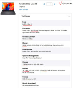 Dell Pro Max 16 Mc16250 / Ultra 9 285H, vPro / 32GB / 1TB / 16″ FHD+ Touch / New – From U.S.A
