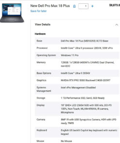 Dell Pro Max 18 Plus / Core Ultra 9 / RTX PRO 5000 – 24GB /128GB / 1TB / 18″ QHD+ / LTE 5G / New – From U.S.A