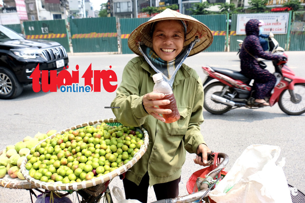 TTO – Những ngày qua, trong những giờ nắng nóng gay gắt tại Hà Nội, nhiều người đi qua khu vực Ngã tư Vọng đã được tiếp sức với những chai nước chè xanh ướp đá mát lạnh, xua tan cái nóng ngày hè.