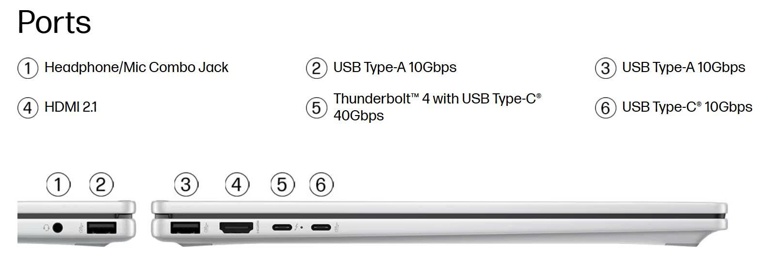 HP OmniBook 7 Flip 2-in-1 sở hữu đầy đủ các cổng kết nối: