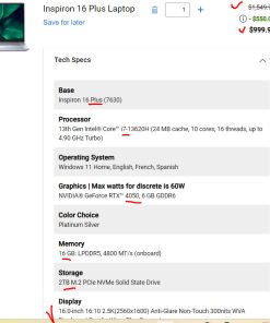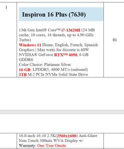 TÌNH TRẠN THỰC TẾ Inspiron 16 Plus (7630) Bán ra Tại Hà Nội Lab