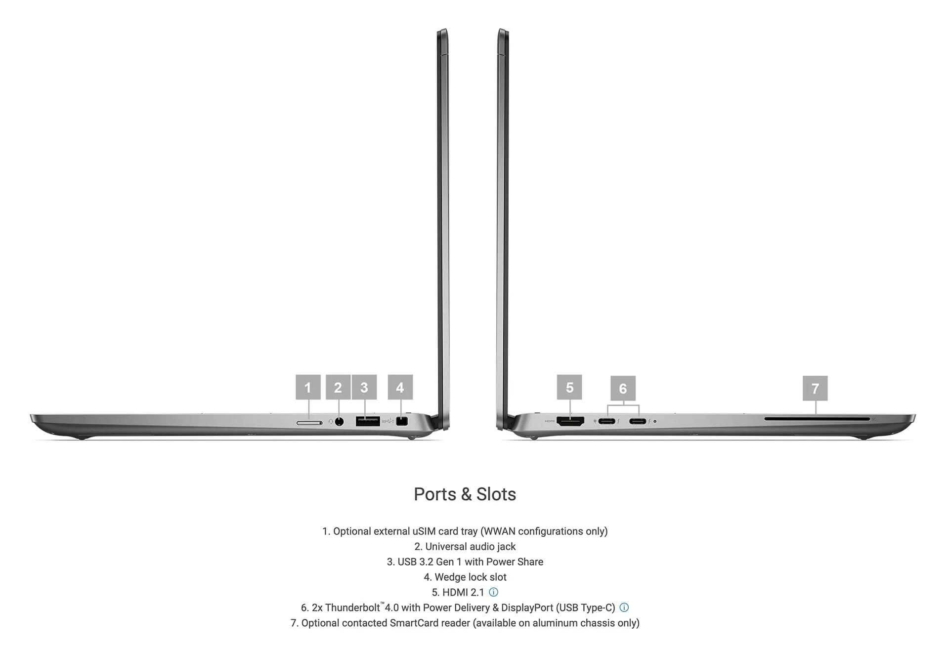 Khe cắm & Kết nối trên Dell Latitude 13 7350