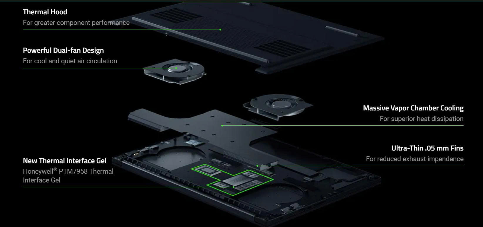 Razer cũng cho biết họ đã thiết kế lại về hệ thống tản nhiệt, sử dụng một loại gel tản nhiệt mới có khả năng bao phủ nhiều diện tích bề mặt bên trong hơn so với mẫu 2023.