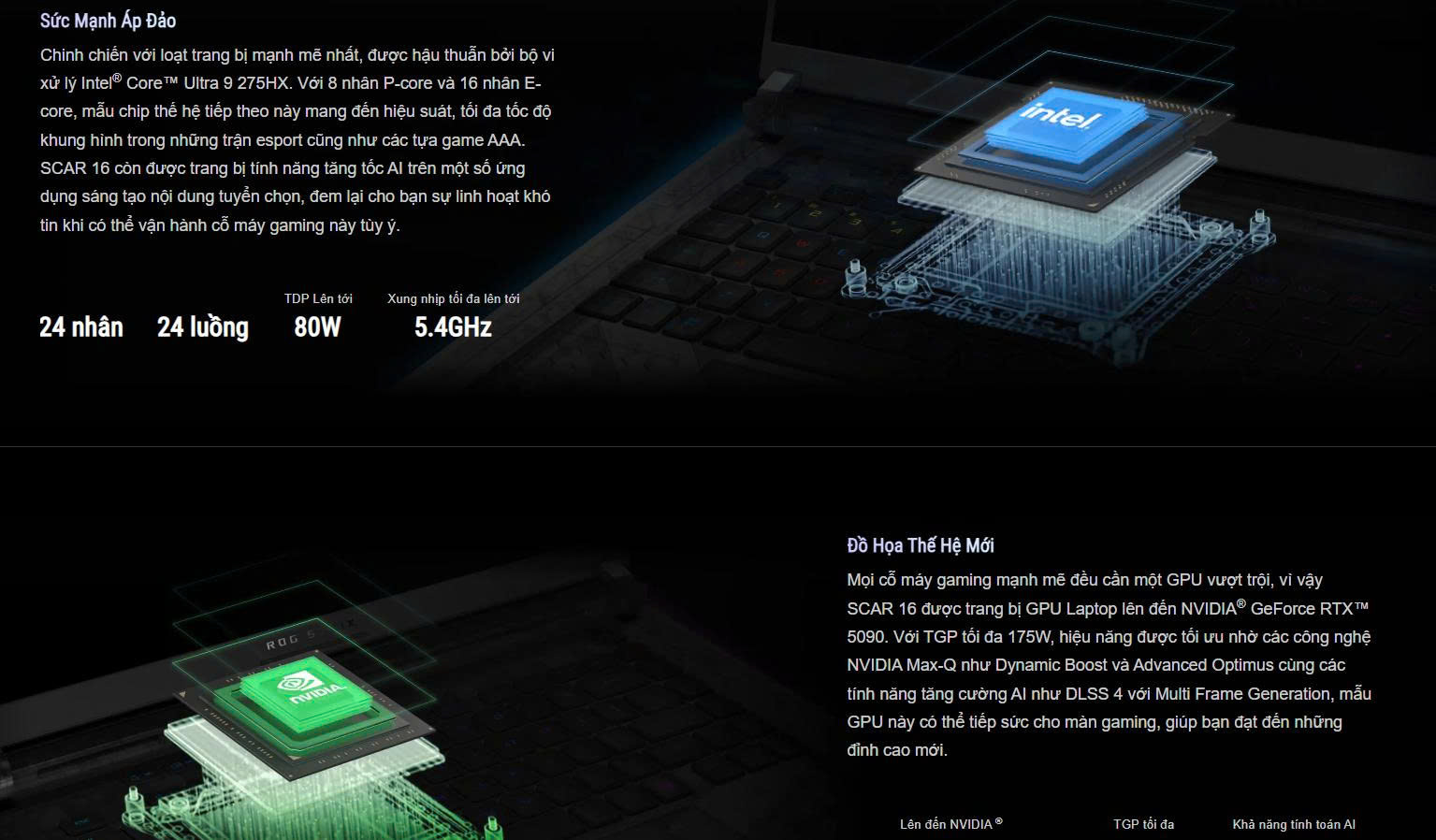 ROG Strix Scar 16 G635LW với chip Intel Core Ultra 9 275HX cùng VGA GeForce RTX 5080 sẽ phục vụ tốt cho nhu cầu chơi
