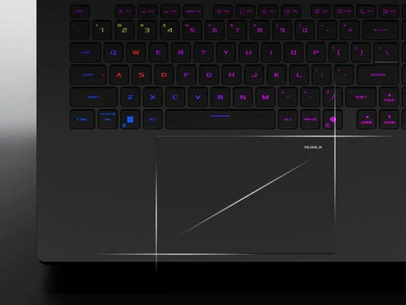 Để tạo điểm nhấn cho laptop, Asus đã trang trí logo ROG cũng như tích hợp màn hình AniMe Vision độc đáo trên nắp lưng. Với màn hình AniMe Vision, người dùng sẽ có thể tùy chỉnh hình ảnh, văn bản để tạo phong cách riêng cho chiếc laptop gaming này. Dải LED RGB của laptop được đặt ở mặt đáy, chạy dọc theo khung máy.
