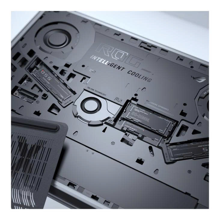 Nhằm mang lại sự ổn định trong quá trình laptop hoạt động, Asus còn trang bị thêm cho sản phẩm hệ thống làm mát thông minh ROG. Các cửa hút được đặt ở mặt bên và mặt đáy trong khi lỗ thông hơi được di chuyển hết về phía sau tạo nên một đường dẫn khí tự nhiên.