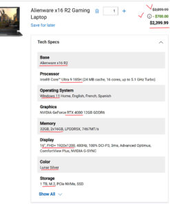 Alienware m18 R1 nhập khẩu từ Mỹ – Toàn cảnh trả hàng Khách build cấu hình theo yêu cầu từ website nhà sản xuất