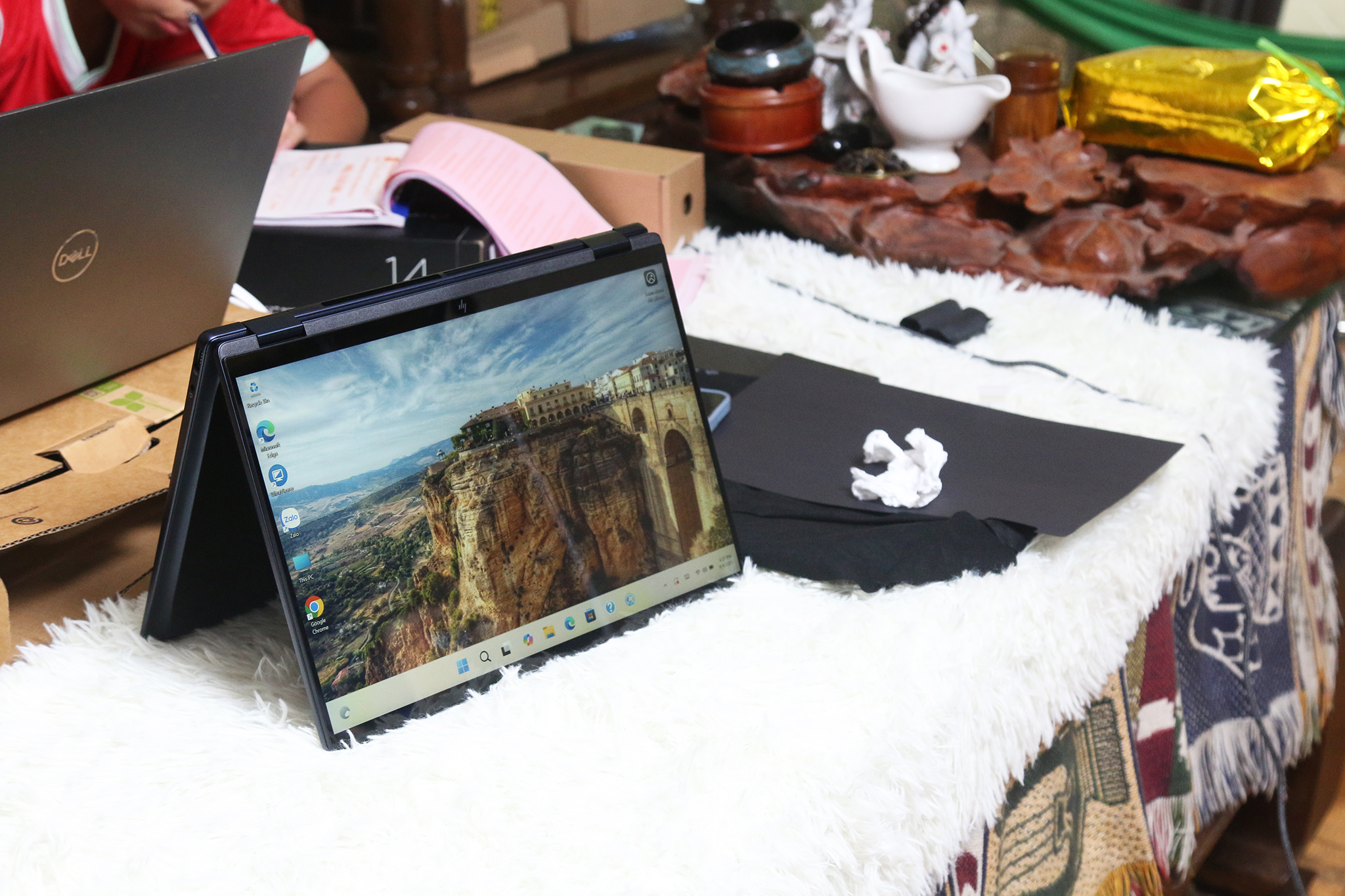 Bản lề xoay 360° cho phép sử dụng ở nhiều chế độ: laptop, máy tính bảng, chế độ trình chiếu hay lều.