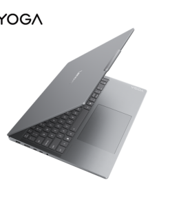 Phiên bản Aura Edition có màu ánh bạc pha chút ánh xanh nhạt – tạo hiệu ứng chuyển sắc tinh tế khi thay đổi góc nhìn dưới ánh sáng, đúng với tinh thần “Aura” – hào quang và sáng tạo. Logo Yoga khắc nổi góc nắp lưng tạo điểm nhấn sang trọng, đồng thời thể hiện đẳng cấp của dòng máy flagship.