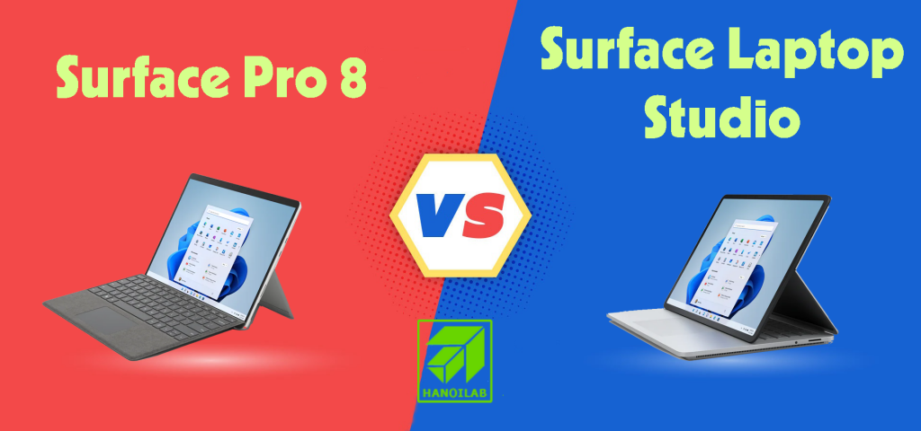 Surface Pro 8 được đánh giá là tablet 2 in 1 tốt nhất năm 2021. Trong khi đó, Surface Laptop Studio được mệnh danh là dòng Surface có cấu hình mạnh nhất trong thập kỷ vừa qua. Với cấu hình mạnh mẽ như vậy, người dùng đang rất phân vân không biết nên lựa chọn thiết bị nào phù hợp với mình. Hãy cùng HanoiLab điểm qua những điểm mạnh của 2 model Surface này và lý do tại sao bạn nên chọn model nào cho phù hợp nhé !