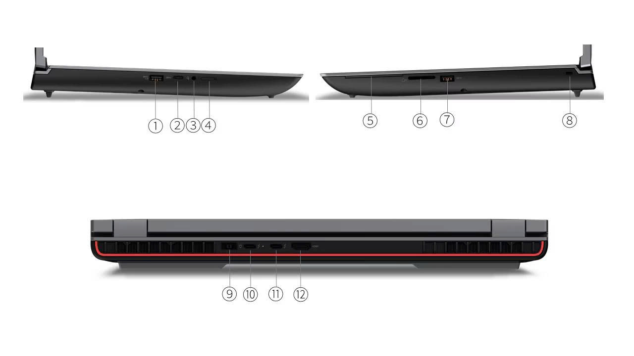 Vì là dòng máy chạm fullsize nên Thinkpad P16 Gen 1 đã được trang bị đầy đủ các cổng kết nối phục vụ người dùng. Cụ thể, ở phần mặt sau sẽ được tích hợp 1 cổng sạc chân dẹt, 2 cổng USB – C Thunderbolt – 4, 1 cổng HDMI. Còn phía bên cạnh trái sẽ có cổng USB – A 3.2 Gen 1, 1 cổng USB – C 3.2 Gen 2. Về phía cạnh phải chúng ta sẽ có 1 cổng Smart card, 1 khe thẻ SD và 1 cổng USB – A 3.2 Gen 1.
